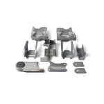 - Description: Front axle mounting bracket kit for the Wrangler. Includes all stamped production axle brackets to mount an axle in a Wrangler model. Great for fabrication or repair.